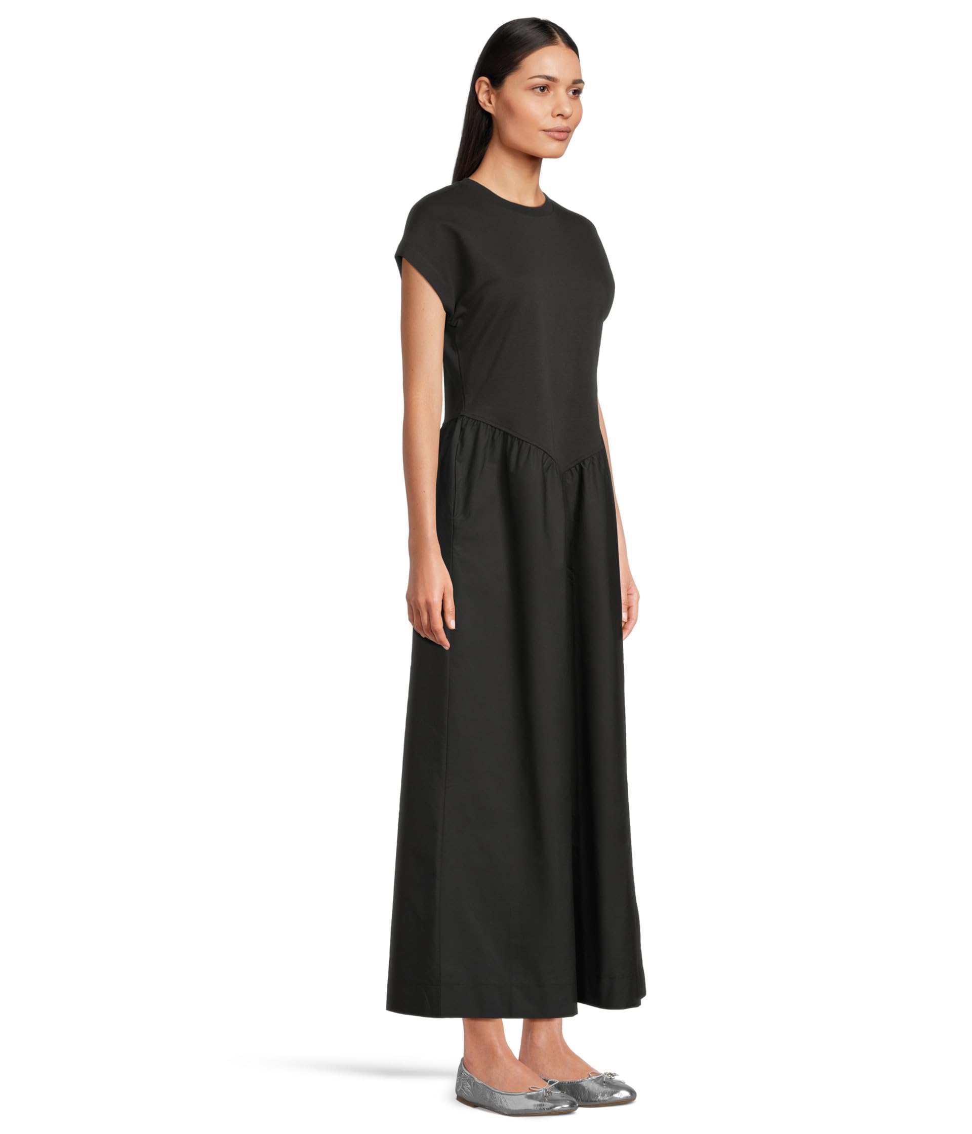 Gray round neck short sleeve long dress