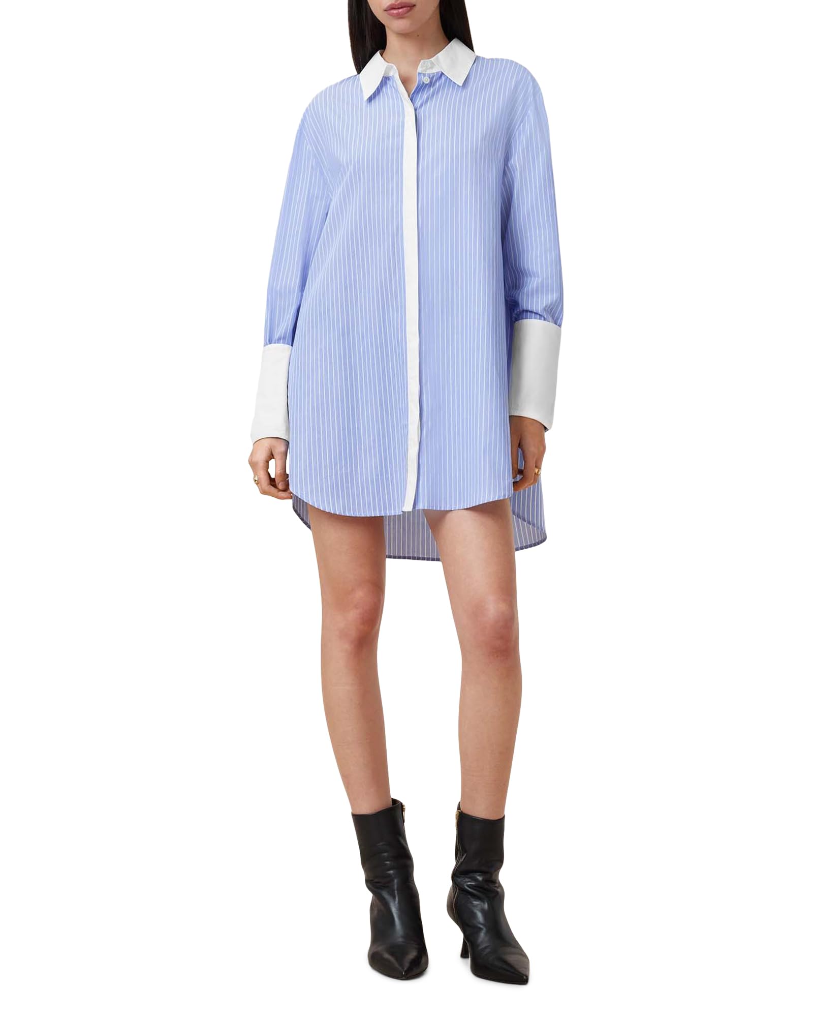 Blue and white striped contrast shirt dress