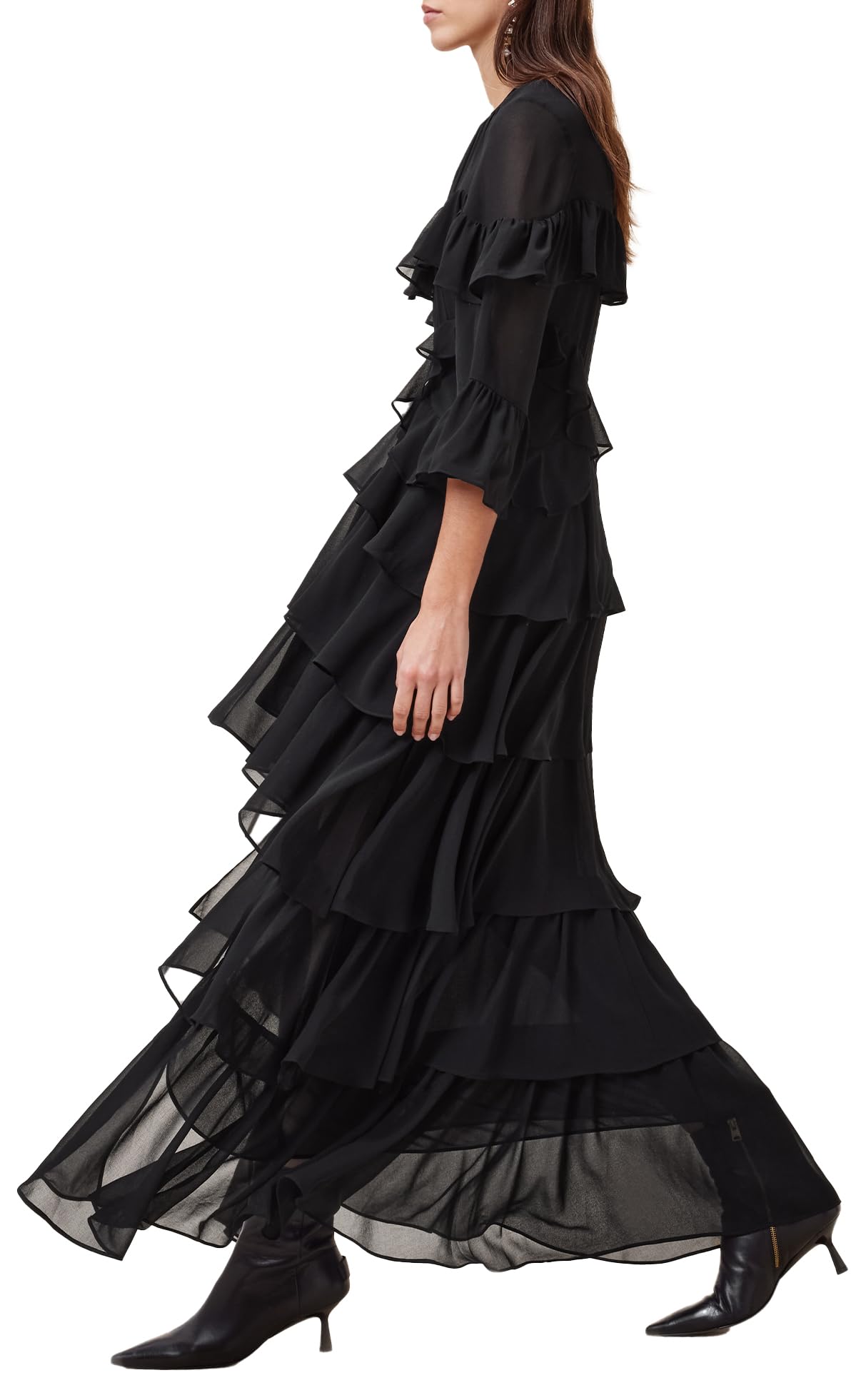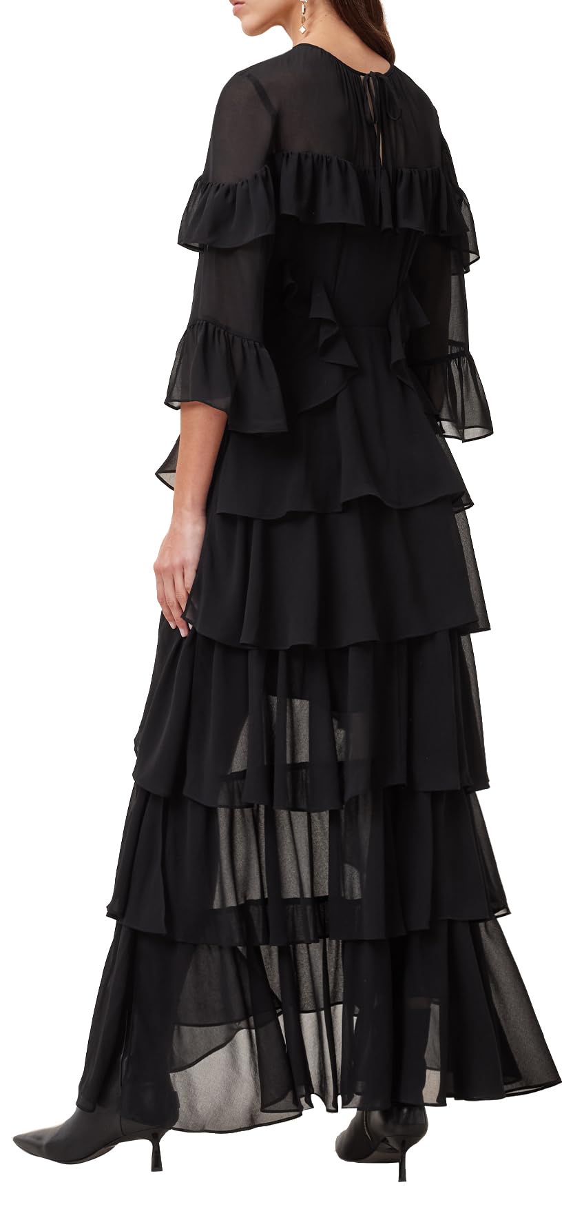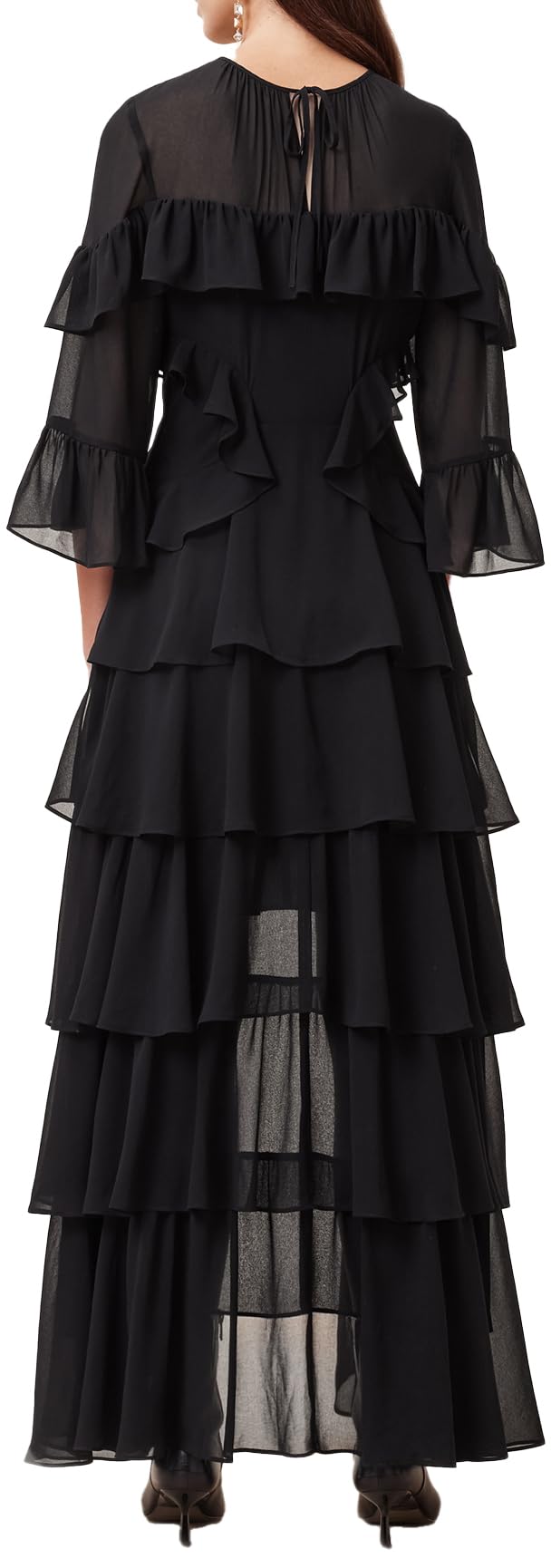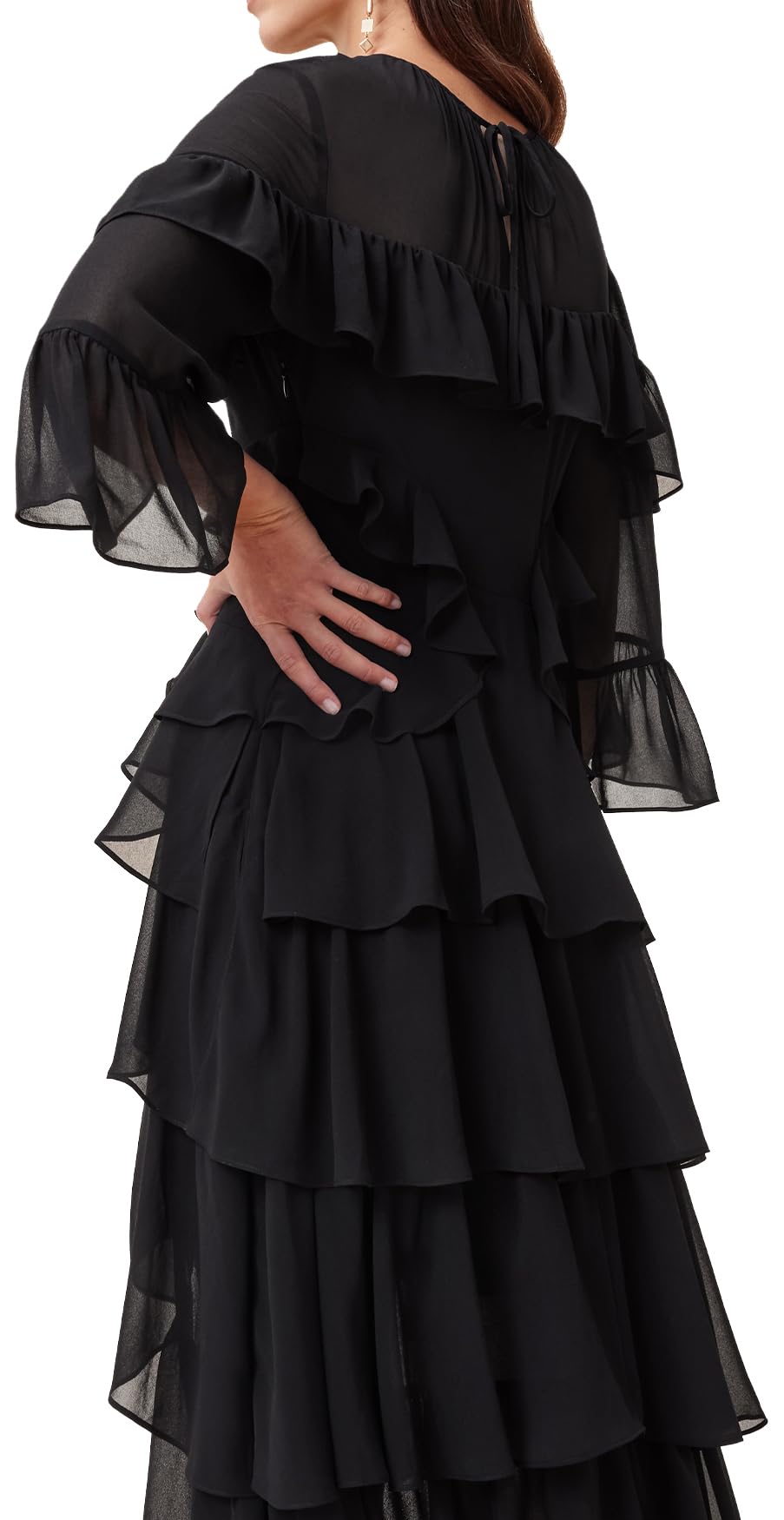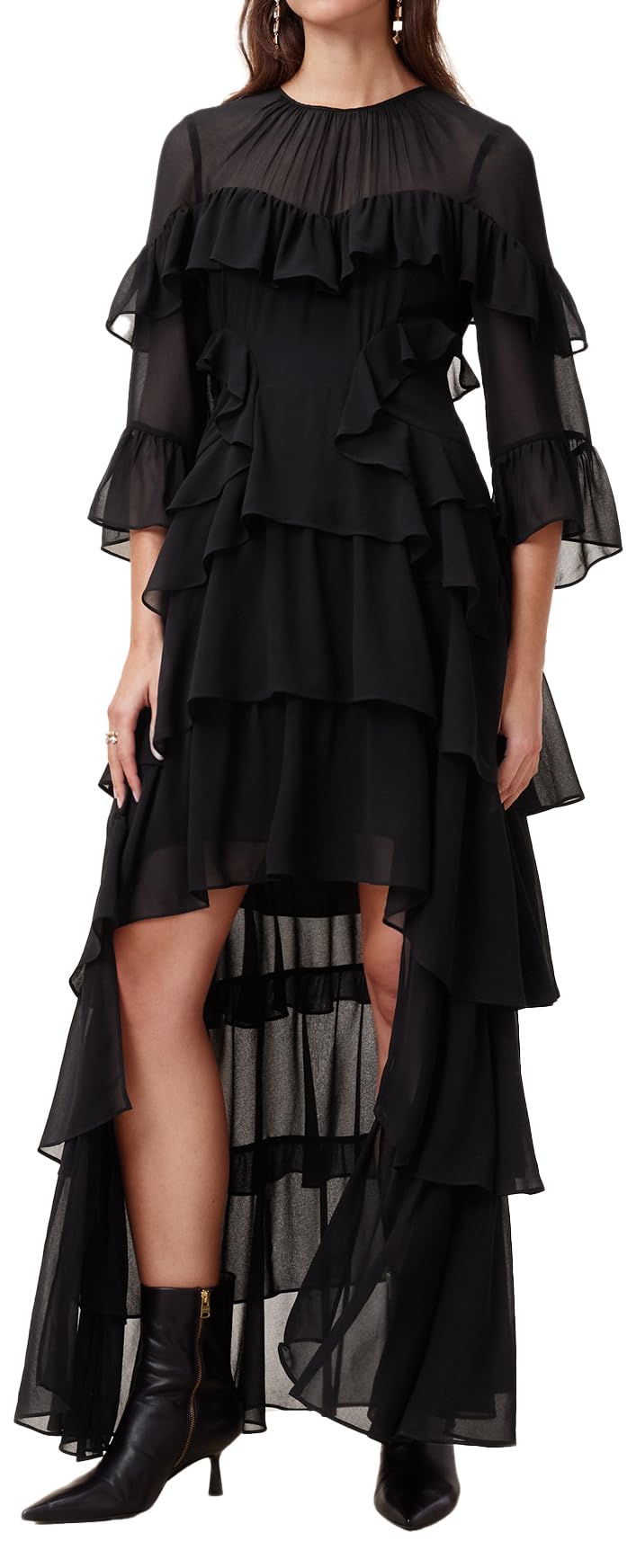 Parties: This black dress will be a sure-fire hit at a friend’s party or a small dinner. The multi-layered ruffles and irregular hem exude a romantic and unique look, while the sophisticated black color elevates your overall style and makes you stand out at any gathering.