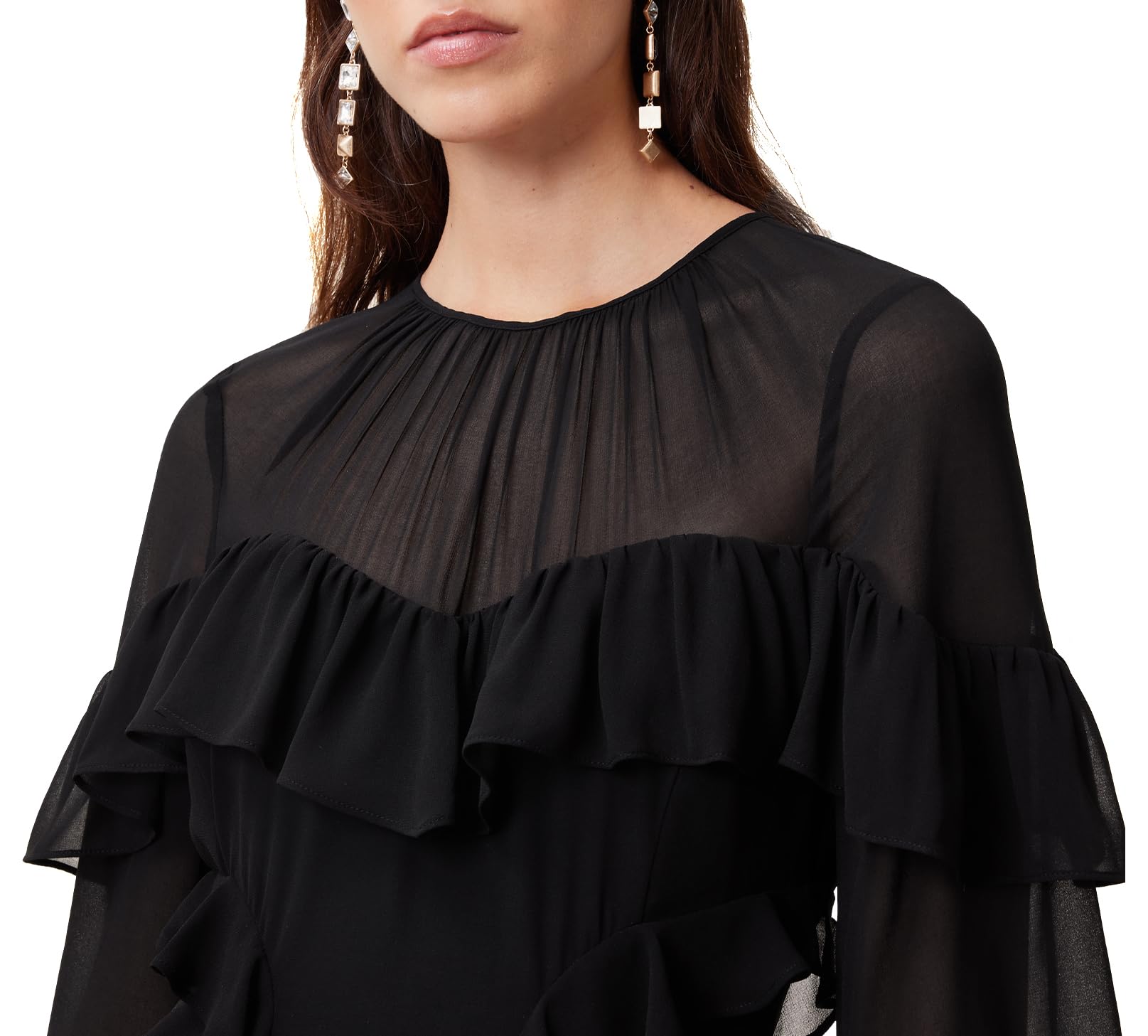 Dating: This dress also showcases your gentle charm when you’re with your significant other. The vibrant ruffles complement the mysterious black, creating a romantic and captivating atmosphere, making you an exceptionally captivating presence.